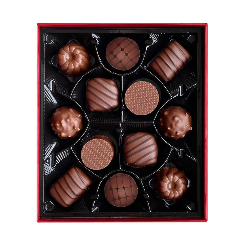 Discover the best of Maxim’s milk chocolates with this beautiful red box, designed to delight chocolate lovers with its elegant presentation. Inside, enjoy an assortment of 12 delicious milk chocolates, each carefully crafted to awaken your taste buds with a variety of exquisite flavors.