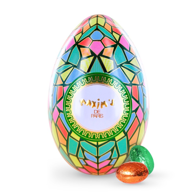 The Maxim's metal egg needs no introduction, this gourmet treasure reminiscent of precious collectible eggs is a pleasure to give or treat oneself. To celebrate the arrival of spring, Maxim's is unveiling a new edition with a captivating design: a mosaic decoration with brilliant reflections.