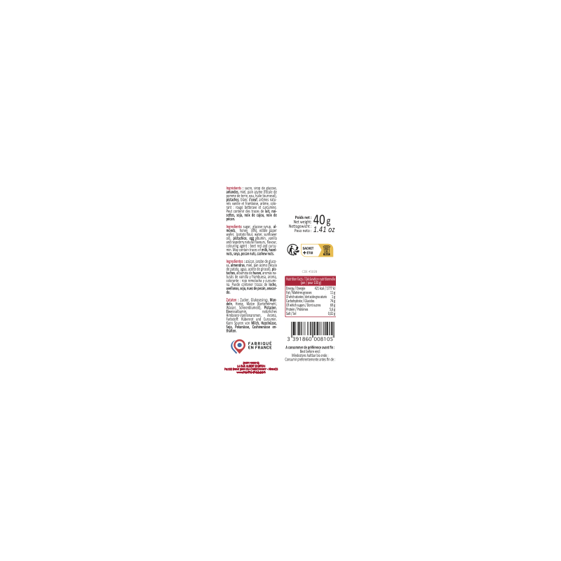 Made with quality ingredients such as honey, almonds, and sugar, these Montélimar nougats offer a tender yet slightly crunchy texture. The plain nougat showcases all the richness of the traditional recipe, while the raspberry nougat adds an original and refined fruity touch.
