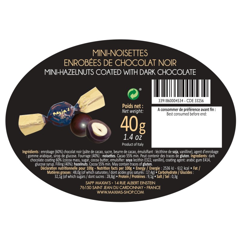 Mini noisettes enrobées de chocolat noir