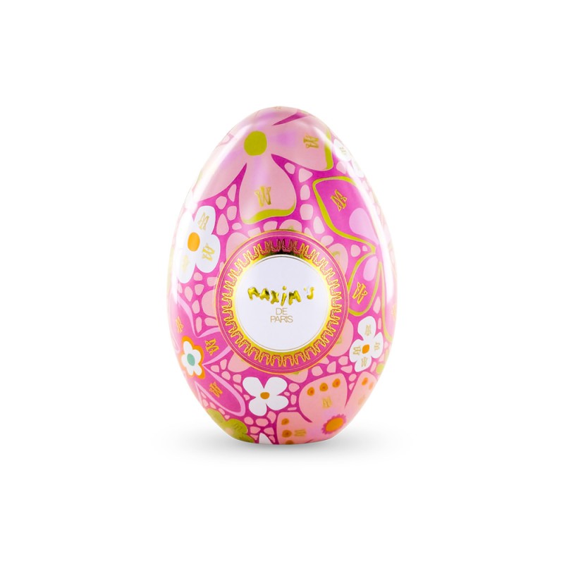 Craquez pour le mini œuf métal rose Maxim’s, une création gourmande et élégante idéale pour célébrer Pâques et l’arrivée du printemps. Présenté dans une jolie boîte en métal au décor floral coloré, cet œuf allie raffinement et plaisir chocolaté.