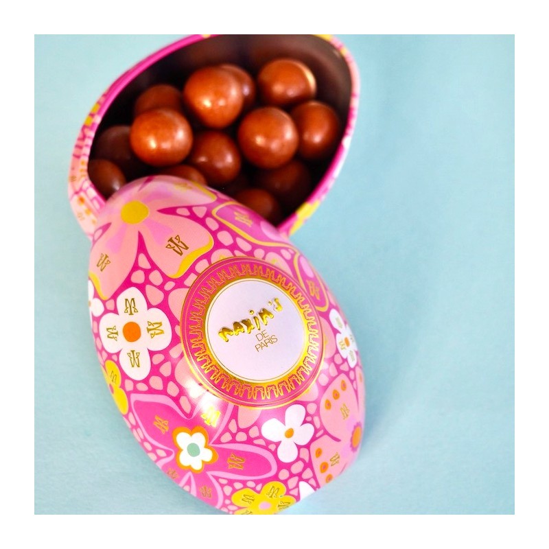 Pour fêter l’arrivée du printemps, Maxim’s est fier de vous présenter son mini œuf métal rose au décor floral et coloré. À l’intérieur, retrouvez de délicieuses perles de céréales croustillantes, délicatement enrobées de chocolat au lait. Un classique indémodable à cacher dans le jardin pour la chasse aux oeufs !