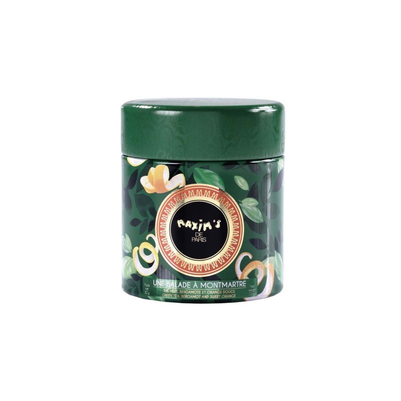Le thé « Une balade à Montmartre » est parfumé aux huiles essentielles d'orange douce, de bergamote de Calabre et de citron. Un thé vif, frais et fruité qui vous séduira par la finesse de ses arômes qu’il soit dégusté chaud ou glacé. Le thé vert est généralement considéré comme extrêmement bénéfique pour la santé.